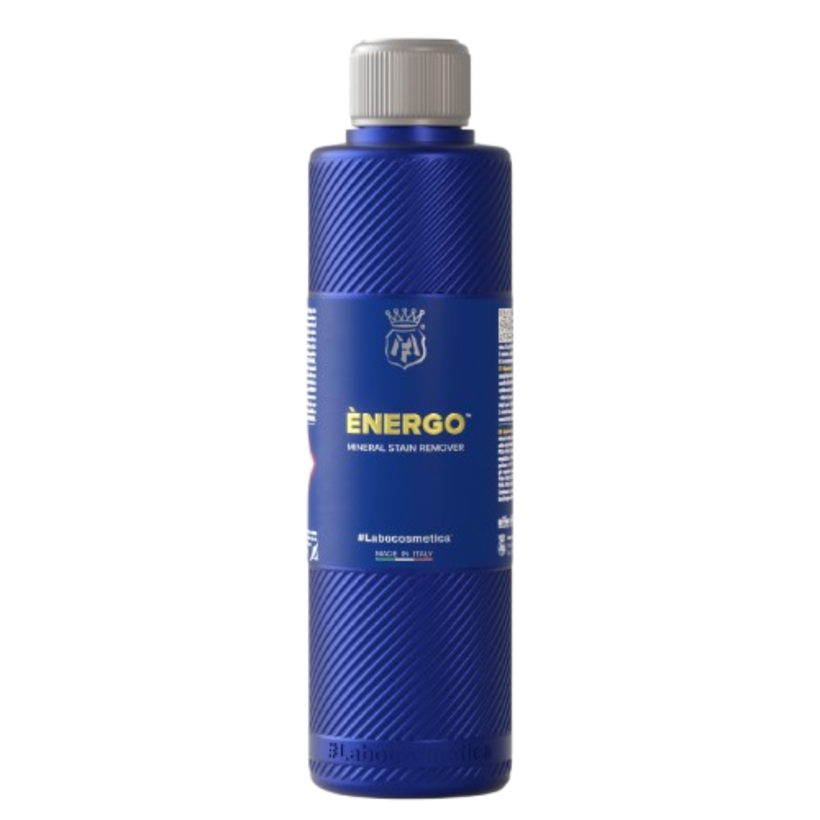 ÈNERGO entfernt Kalkablagerungen und starke Verschmutzungen durch sauren Regen von Scheiben und Karosserie und verkürzt die Polierzeit erheblich. Sehr oft können Kalkflecken mit normalem Polieren nicht entfernt werden: ÈNERGO ist eines der wenigen Produkte, die dem Lackierer bei einer der schwierigsten Aufgaben helfen können, nämlich der Entfernung von Kalkspuren vom Lack.