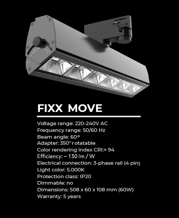 Fixx Move ist eine 50 cm lange Leuchte, die für die Schienenmontage an der Wand empfohlen wird. Die Lampe kann in der Höhe nach oben/unten gefahren werden, sodass Sie den Lichtkegel anpassen können, egal ob Sie einen Aygo oder einen Range Rover polieren. Fixx Move ist nicht nur in der Höhe der Schiene auf- und abfahrbar, sondern auch um 120 Grad verstellbar. Zum Beispiel. Sie können die Lampe, die sich hinter/vor dem Auto befindet, drehen, sodass das Licht nicht zur Seite, sondern in Richtung des Autos geworfen wird.