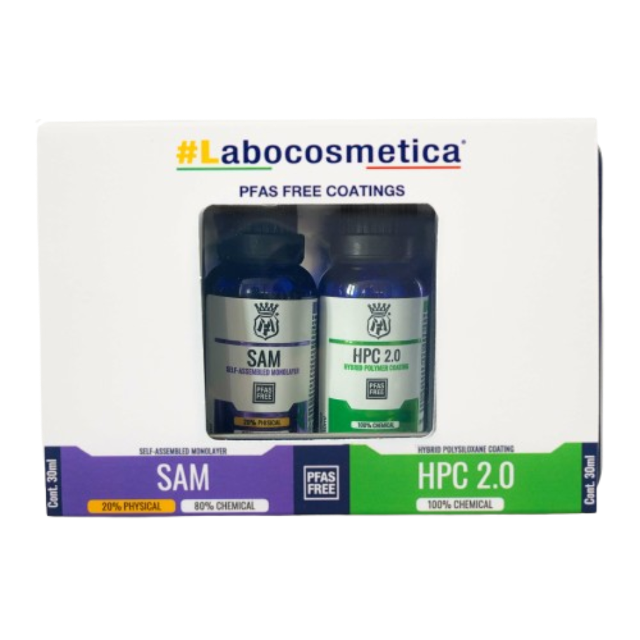 Die Kombination von SAM und HPC 2.0 von Labocosmetica, ohne PFAS und Forever Chemicals, bietet einen fortschrittlichen Nanoschutz, der die Lebensdauer auf bis zu 4 Jahre oder 60.000 km verlängert. Diese Synergie zwischen den beiden Beschichtungen garantiert eine lang anhaltende und zuverlässige Leistung, die Ihr Auto vor äusseren Einflüssen schützt und es glänzend hält.
